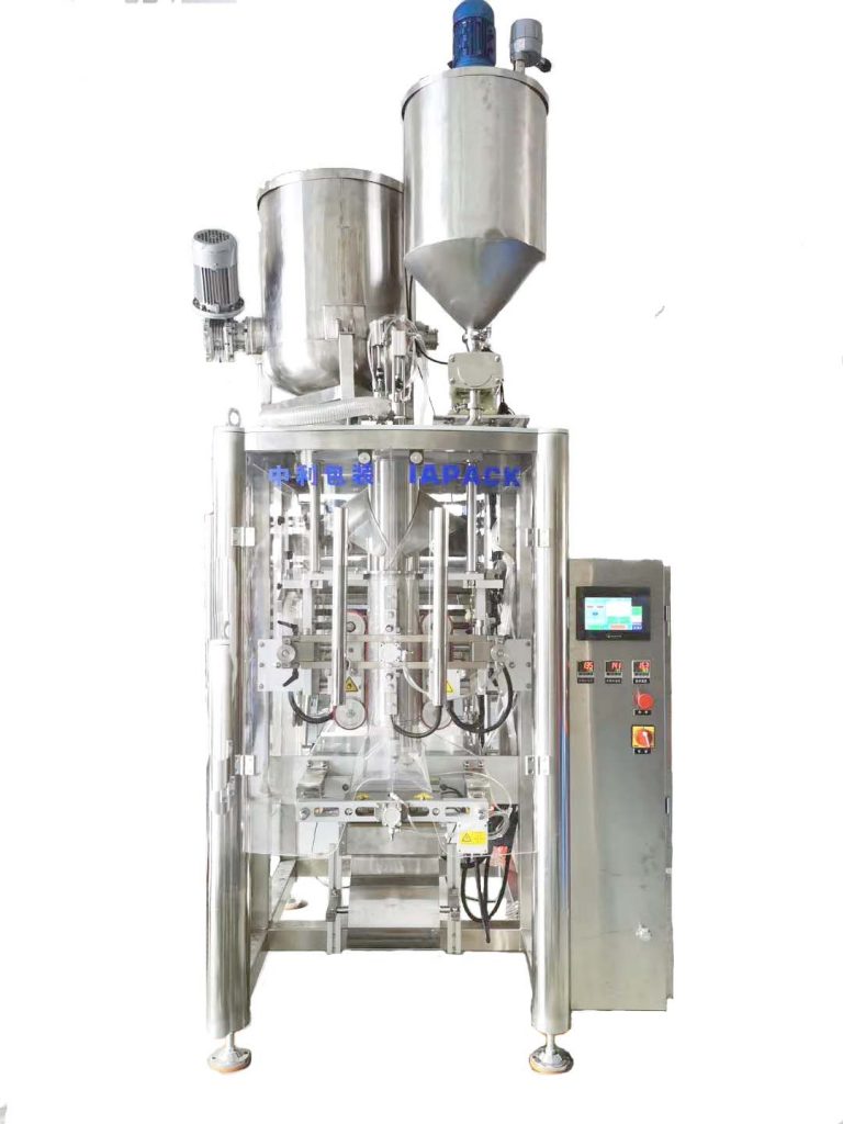 This unit was developed for the needs of fluid and viscous products. The unit is composed of a grouting machine and a packaging machine; the packaging machine has a simple structure and is easy to operate; the machine integrates the functions of bag making, filling, sealing and counting. It uses a servo motor to pull the film and has an automatic deviation correction function.