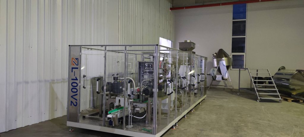 The client order the machine for packing 100gram dry yeast in to brick vacuum bag .We had offer the ZL100V2 double vacuum chamber bag forming filling sealing vacuuming packaging machine .The whole machine can automatic forming the bag from roller film and the weighing the dry yeast and filling the yeast into bag then send the bag for vacuuming and last trimming the bag top .The finished bag is brick vacuum bag with high vacuum degreen .Welcome more and more client inquiry us about this machine