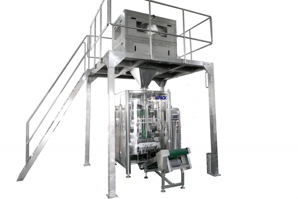 This machine unit is including one set ZL720 vertical bag forming filling sealing machine and one set ZLS-6 Six bucket weighing machine ,One set DT3 vertical elevator and output conveyor machine .The whole machine unit can reach automatic bag making ,Product weighing ,product filling sealing and date coding .Widely use for packing slat ,detergent powder, rice ,bean and other granular product .