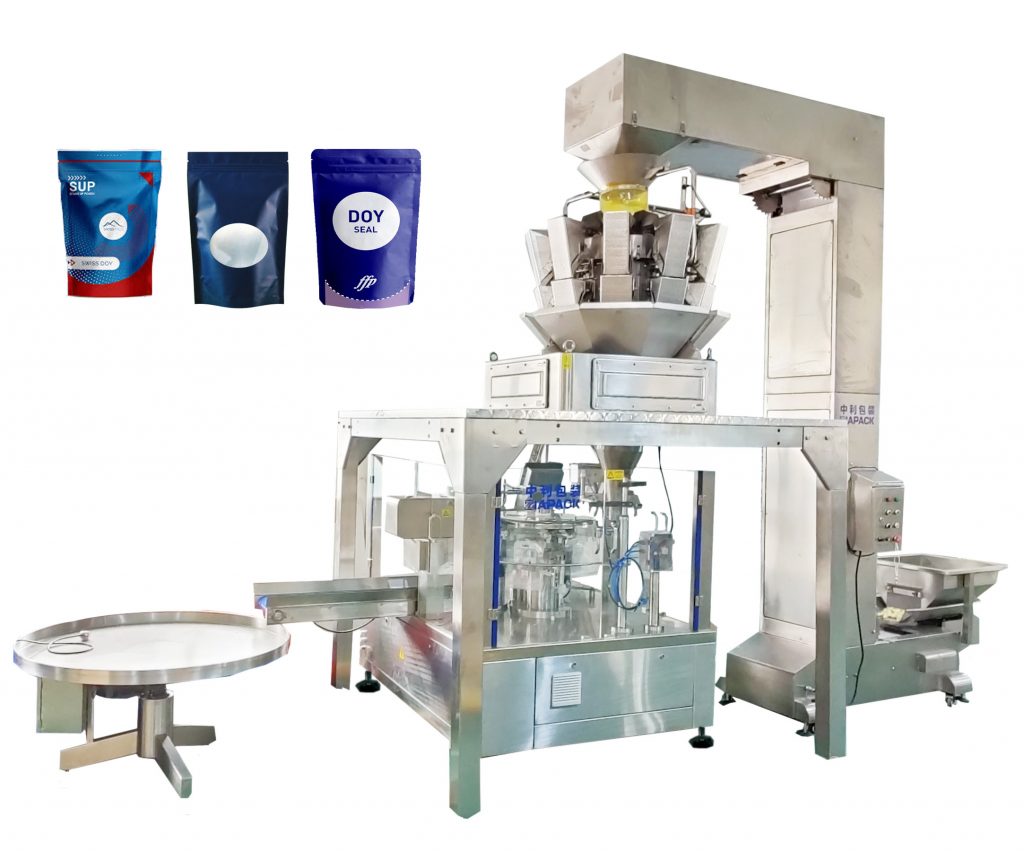 Pre-made pouch fill and seal machine, composed of 8 working stations of efficiency and stability, emphasizes the package of stand-up bag, zipper bag, spout bag, and various pre-made pouches. Cooperated with different dosing systems (combination weigher/ linear weigher/ auger screw/ piston filler) and automatic lifting conveyors, it is widely applied to granules, liquid, and powder.